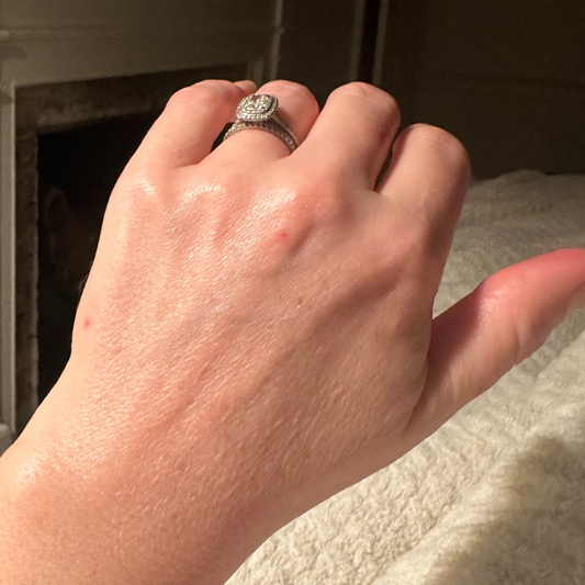 P.S. The first photo was taken the morning after my engagement (aka "the photo that was never sent") in September 2017. The second photo was taken in August 2023 while I was formulating Habelo. And the final shot was taken in March of 2024 when I had finalized the Activating Hand Serum.