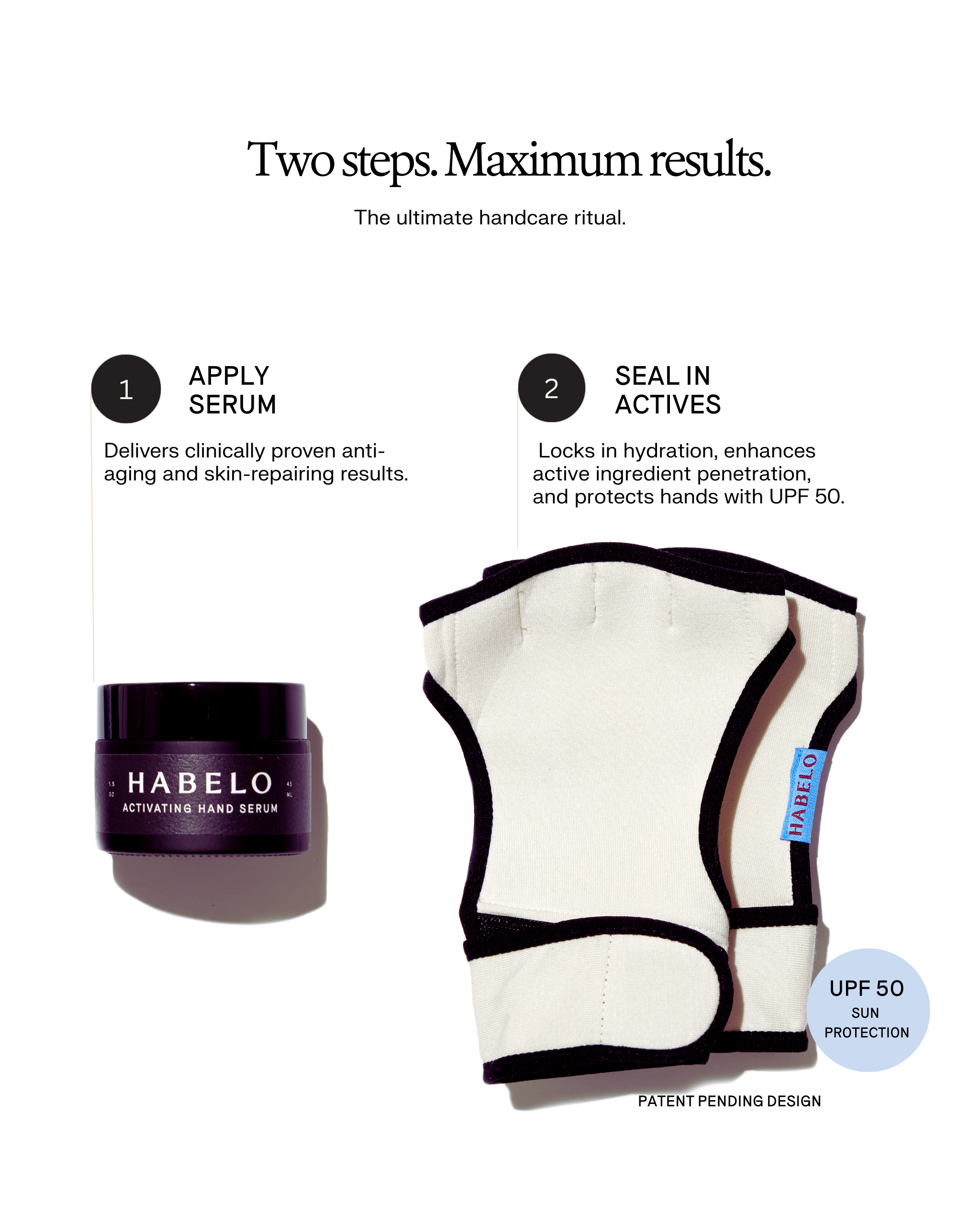 Thatâs where our Treatment-Boosting Gloves come in. Their patent-pending design creates a gentle occlusive layer that slows evaporation and holds the formula against your skin, giving the most advanced performance ingredients the optimal conditions to work at their full potential. Think of the gloves as your luxury accelerator â not required, but the most effective way to maximize results.