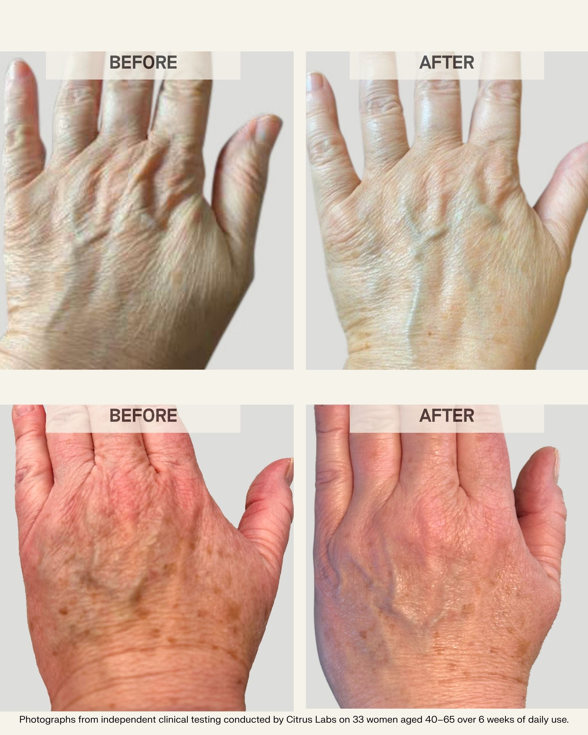 A botanical retinol-alternative packed with the anti-aging vitamin trifecta (A, C, and E). Improves skin thickness, brightens, hydrates, and reduces wrinkles without the inflammatory side effects that retinol can produce (or need for gradual tolerance and sunlight avoidance) â critical for the exposed skin on hands.